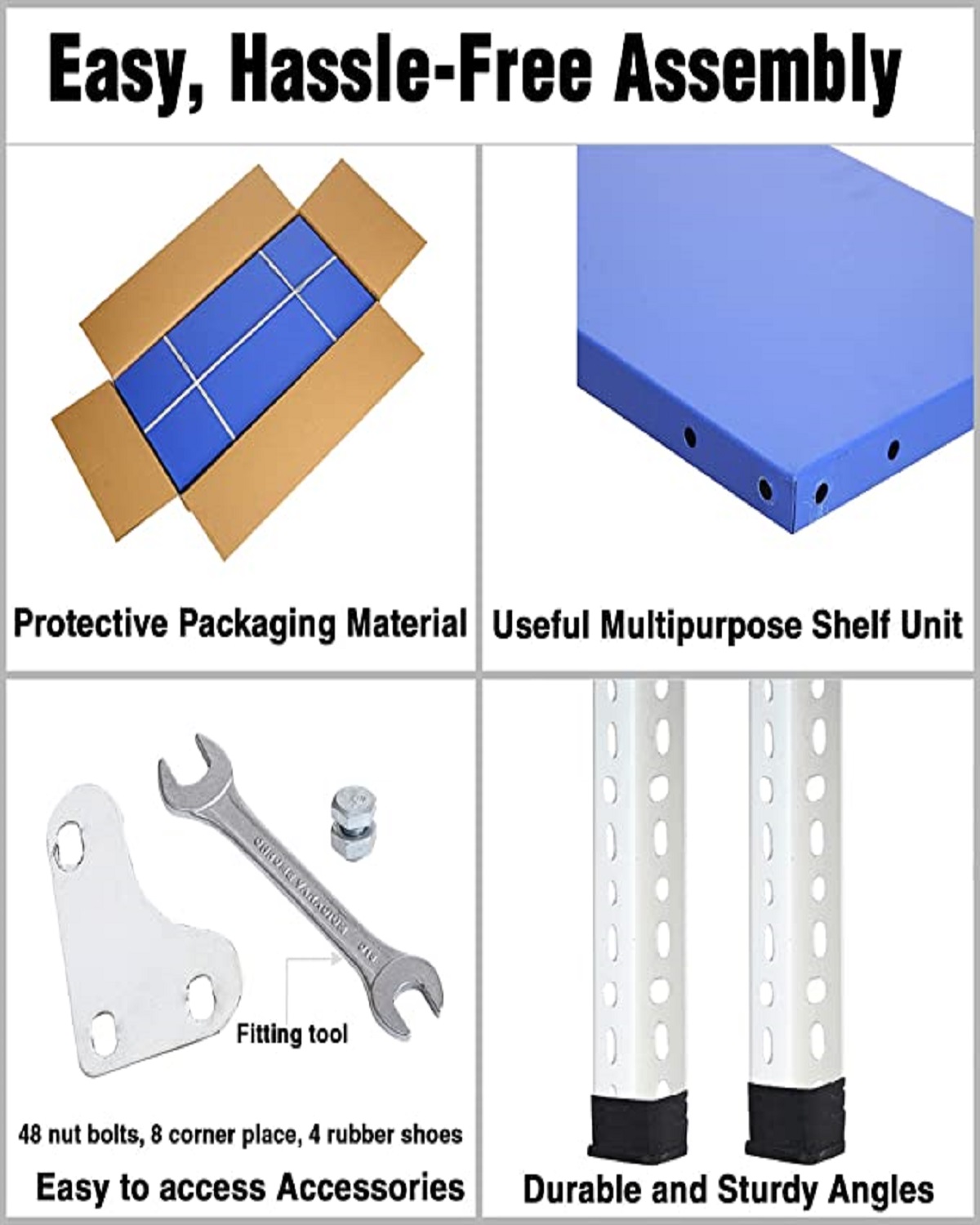 With durable quality and multiple sizes, It's a multipurpose rack which can be used as Industries racks, bath racks, book racks, kitchen racks and cloth racks etc. Its very useful for warehouse and store room purpose.