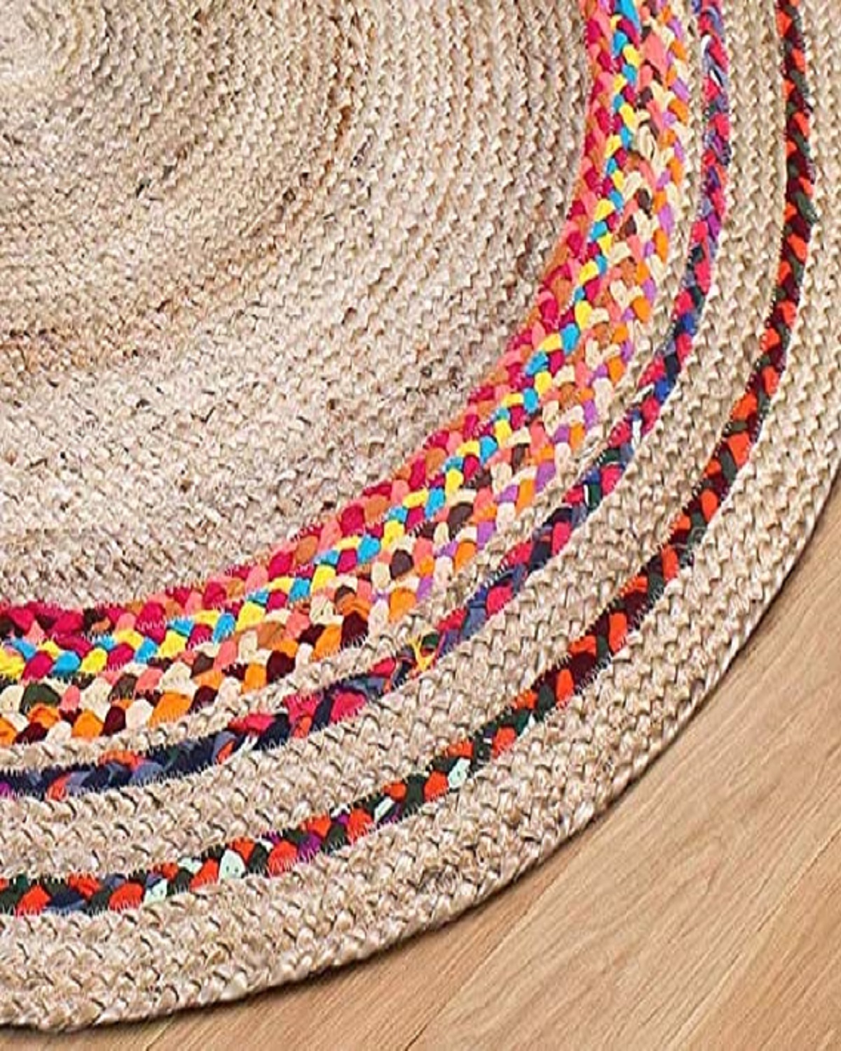 Suryansh Handloom (Size-100cm) Jute & Cotton, Chindi Braid, Hand Woven & Reversible, Vibrant Fabric Rug, Mat for Bedroom Living/Dining Room