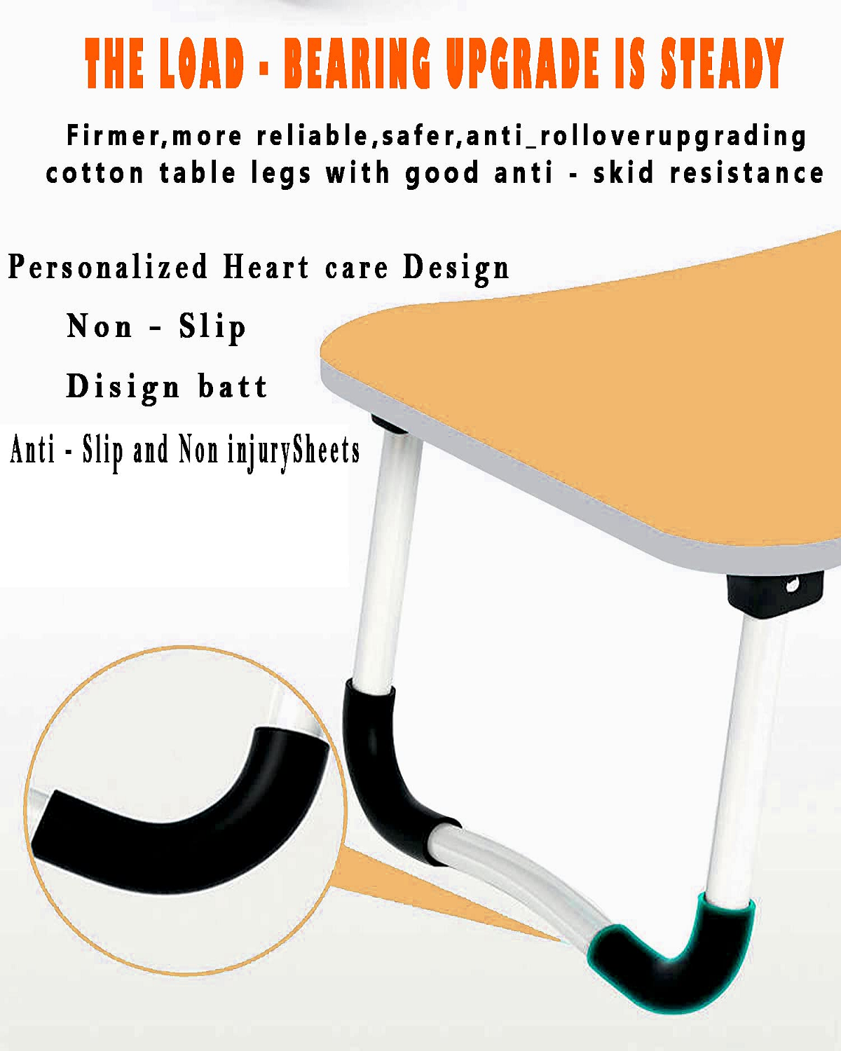 - The tabletop is made up of Engineered Wood which can easily handle the weight of your heavy laptop. The legs of the table are made up of Aluminum alloy, which makes the table heavy-duty but lightweight.