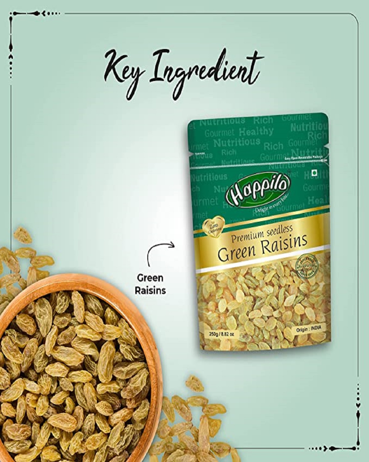 Happilo Premium Seedless Green Raisins 250g | Premium Kishmish/Kismis | Nutritious | Rich in Iron & Vitamin B | Healthy Sweet Treat For Evening Cravings |